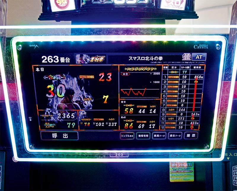 遊技台を選ぶ基準となるのが遊技データ。老若男女ほぼすべてのユーザーが、呼出しランプのデータを確認してから席に着くため、視認性や操作性が高いものがユーザーから好まれる。