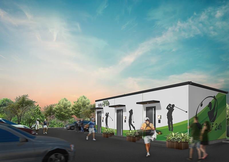 業態転換だけでなく、郊外ホールの駐車場の一部を活用した、ユニットハウス型の建物のシミュレーションゴルフ施設も提案している。クルマ2台分のスぺースから始められ、低コスト・短工期。無人で運営可能だ。ホールを、複合的なエンターテインメントの場とすることができる。