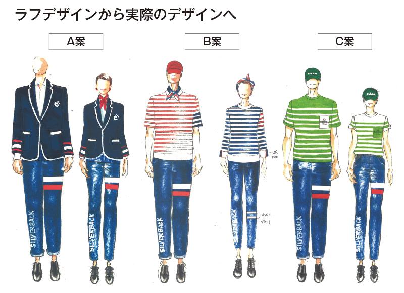 クライアントとの最初の打ち合わせの後、田村社長自らが描いたラフデザインを提出する。オーナーや経営幹部だけでなく、男女両方のスタッフにも出席してもらい、忌憚のない意見を聞く。その後、試作した制服を実際にスタッフに着てもらい、意見を聞きながら調整していく。