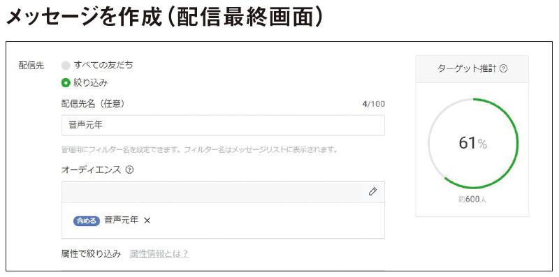 最も効果的な絞り方はオーディエンス設定の「インプレッションリターゲティング」です。インプレッションリターゲティングとは、配信メッセージを開封したユーザーを対象とした配信方法です。配信したLINEを開封しなければインプレッションとしてカウントされないため、インプレッションしたということは開封したお客様の数を示すと解せます。