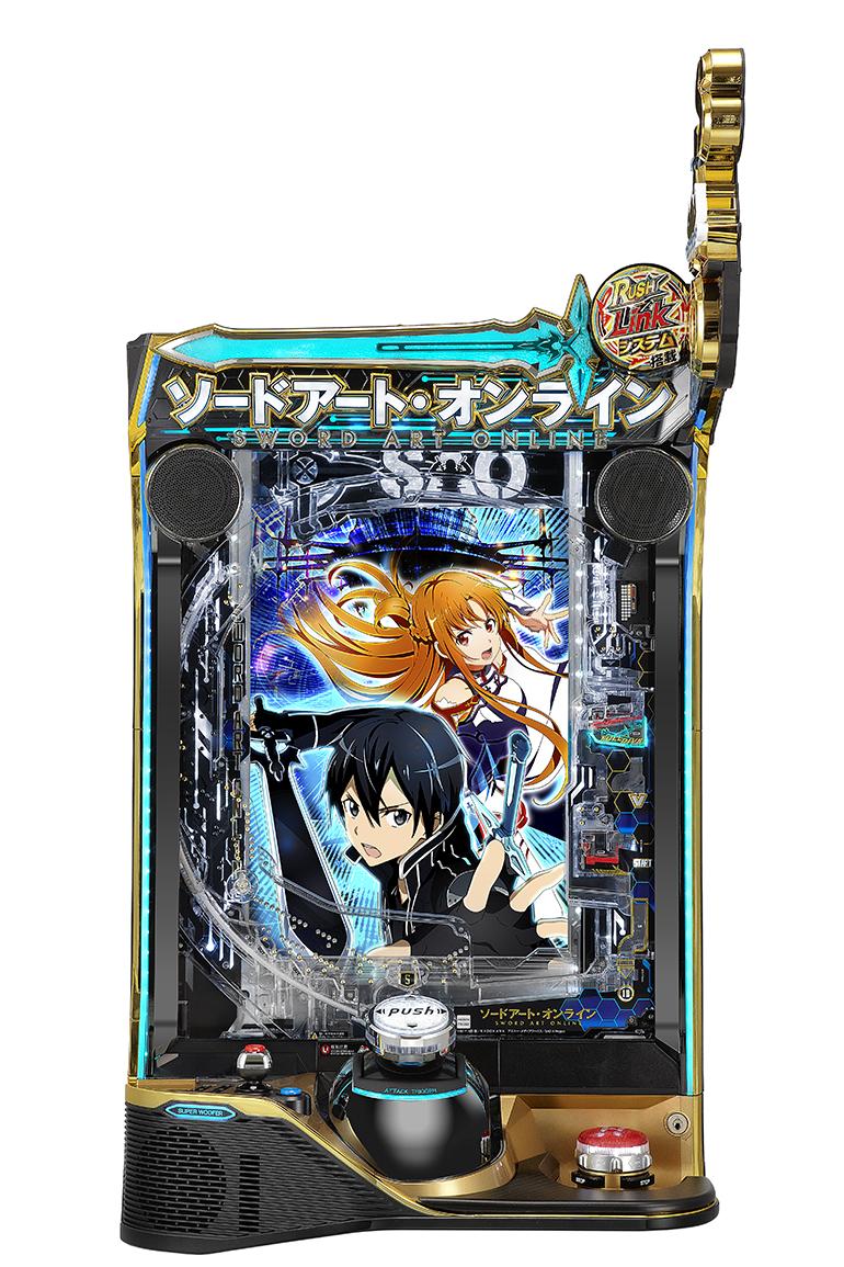 本機は、大当たり確率約1/319.9のSTタイプ。原作のライトノベルシリーズが累計発行部数が3000万部を突破し、アニメ化や映画化もされた大人気コンテンツ「ソードアート・オンライン」のタイアップ機だ。