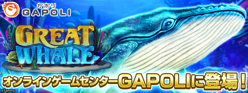 サミーネットワークスが運営するオンラインゲームセンター『GAPOLI(ガポリ)』は8月15日から、サミーのオリジナルビデオスロット「GREAT WHALE」の配信を開始する。