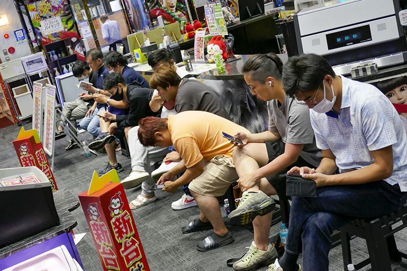 13時頃から待機列ができ始め、16時頃には新台台数分の人数が並んだ。18時の新台開放時には、20円・5円ともに満台スタート。同店スタッフに話を聞くと「009はパチンコでも認知されているコンテンツです。AT初当たり確率は多少重いかもしれませんが、高継続率かつ高純増が特徴の機種です。一度体感していただければファンになっていただけると思います」と話す。