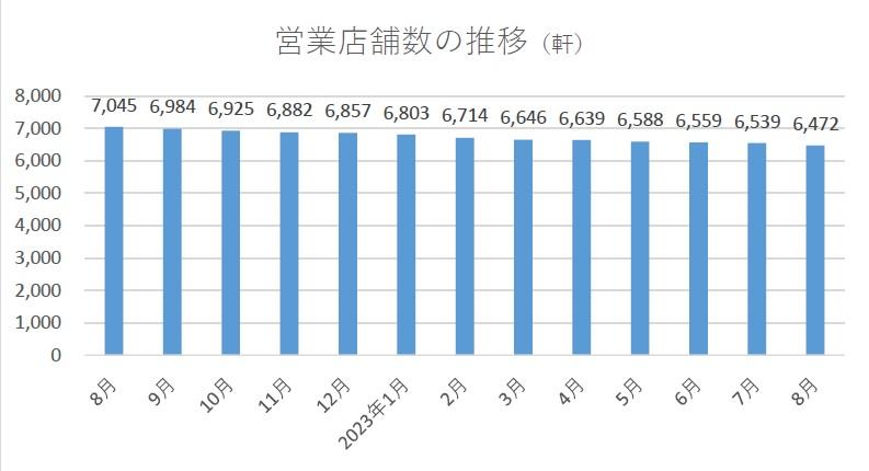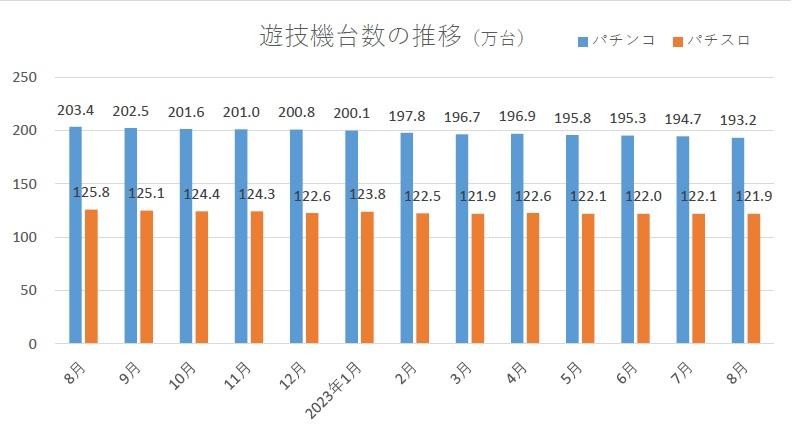 2023年09月26日No.10003827 全日加盟営業店、8月末時点で6472軒 全日本遊技事業協同組合連合会が集計した組合加盟店舗の実態調査によると、8月末時点の営業店舗数は6472軒で、前月より67軒(1.0%)減少した。新規店舗数は0軒、廃業店舗数は69軒、当月中の休業店舗数は30軒。 パチンコ遊技機台数は193万1920台で、同1万5487台(0.8%)減少した。パチスロ遊技機台数は121万9306台で、同1526台(0.1%)減少。その他を含む遊技機総台数は315万1226台だった。 文=アミューズメントジャパン編集部