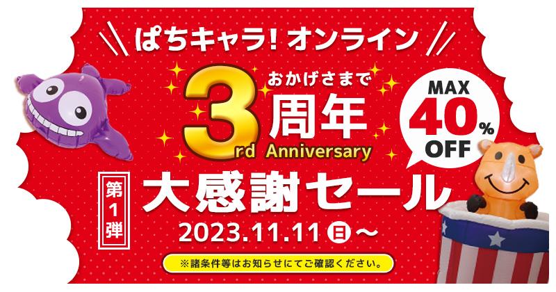 大宏が運営するぱちキャラ景品が中心のECサイト「ぱちキャラ!オンライン」は、サイト開設から3周年を迎えるにあたって、大感謝セールとキャンペーンを実施している。