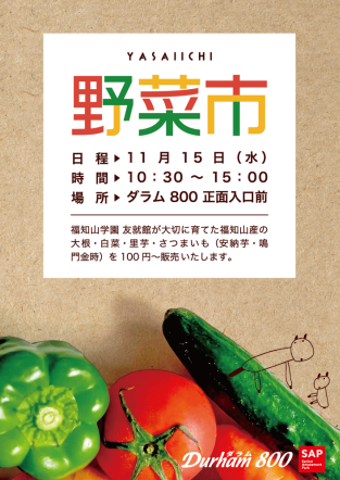 関西圏でパチンコホールほかアミューズメント施設などを展開する三恵観光(京都府福知山市)の『ダラム800』(同)は11月15日、店舗前で「野菜市」を開催した。SDGs目標の一つ「11.住み続けられるまちづくりを」の実現が目的。