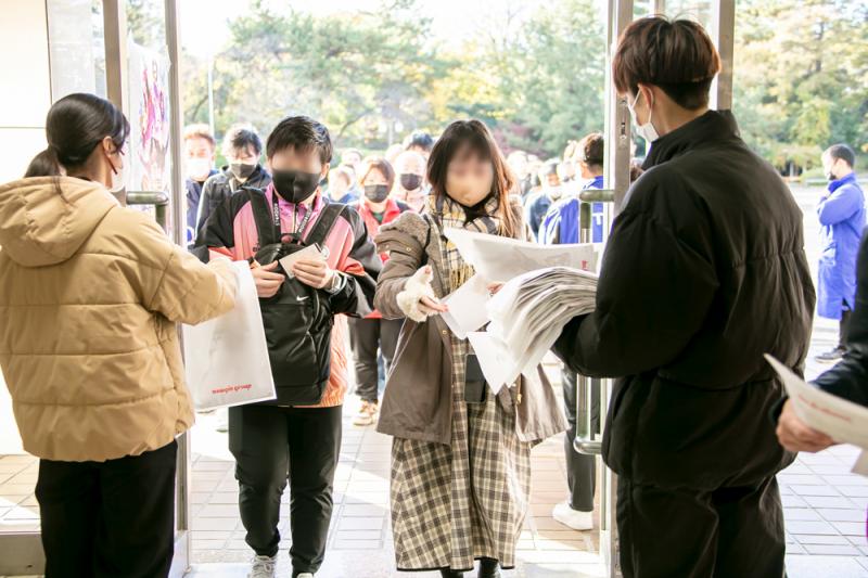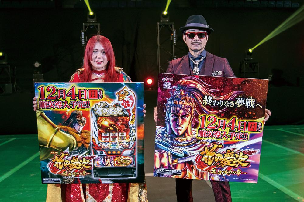 来場者には先着600人に、チラシと「花の慶次」オリジナルミニタオルを配布。会場入り口に実機などを展示した、ニューギン特設コーナーを設置して、2日後に迫った『Lパチスロ花の慶次〜佐渡攻めの章〜』の導入を盛り上げた。