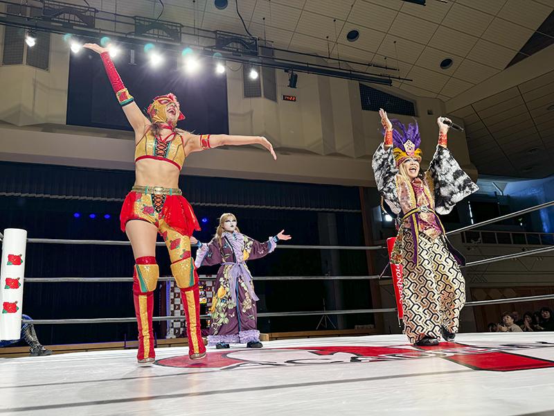 メインイベント(タッグマッチ45分一本勝負)では、AKINO選手&米山香織選手VS【AGE115】ジャガー横田選手&尾崎魔弓選手が対決した。ジャガー横田選手と尾崎選手のタッグは、ギネス記録にも登録されているチームプロレスリングチャンピオンシップを優勝した最高齢女性ペアとして試合に臨んだ。この試合ではリングを飛び出し、場外乱闘が発生。展示していた筐体前で尾崎選手がAKINO選手へ技を決めるなど盛り上がりを見せ、17分56秒にはジャガー横田選手がジャガークラッチ(※変形横回転式レッグロールクラッチ)を決め見事勝利。最高齢の女子タッグ王者としての貫禄を見せつけた。