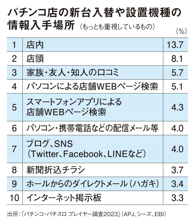 そうなると、遊技者は「パチンコ店の新台入替や設置機種の情報」をどこから入手しているのだろうか?