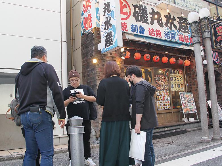 参加者とともにポイトレを体験したのは、YouTubeチャンネルの登録数16万を誇る人気ユーチューバーのメガカスやーまんさん。午前と午後の2回に分けてイベント参加者とともに飲食店など近隣の協賛店を巡った。