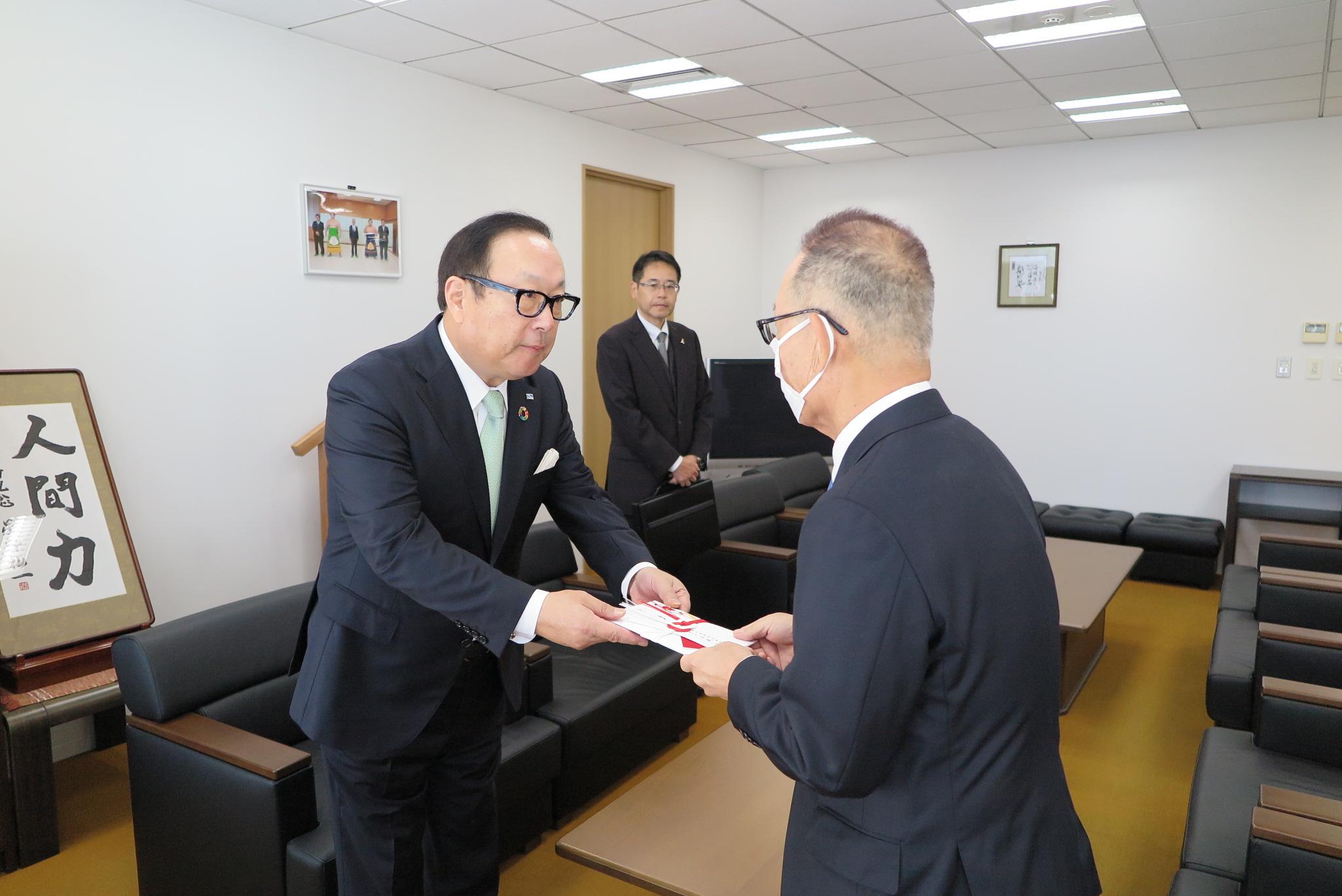 各報道機関を訪れた千原行喜理事長は、「未来に対して希望が持てるようなことに、私たちの業界が少しでもお役に立つことができれば」と各社に伝えた。贈呈先からは「いつも歳末の時期に心温まる寄付金をいただき感謝します。いただいた浄財は地域の社会福祉や交通安全への援助資金、交通事故で親を亡くした子どもたちの就学支援などに使わせていただきます」と謝辞が送られた。