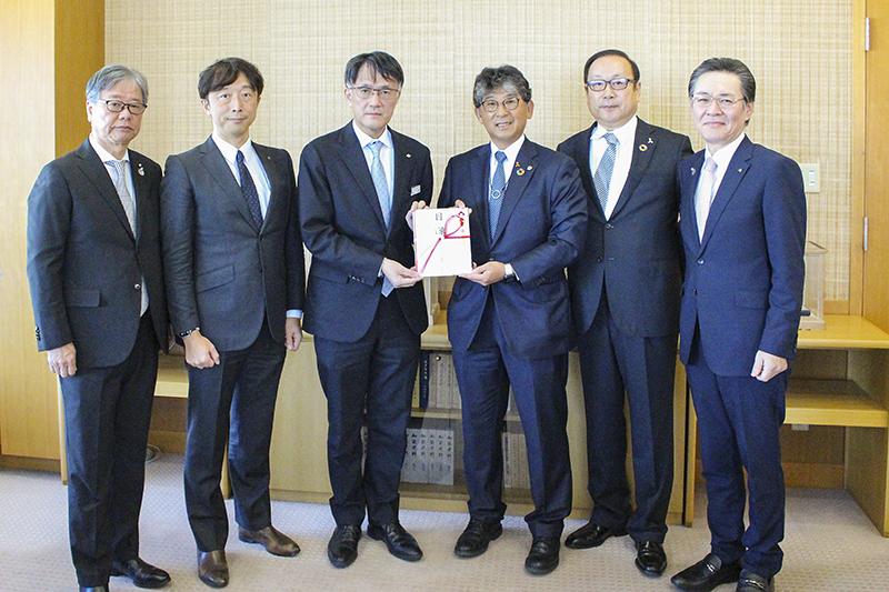 中谷安孝所長に目録を手渡した阿部恭久代表は「一日も早い復興を祈念します」とあいさつ。中谷所長は「ありがとうございます。着実に被災者の皆さまに届けます」と謝意を表した。