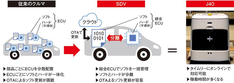 「J40」は上海株式市場に上場している中国・南京市にある産業用ロボットメーカーのYijiahe(イージアヘ)テクノロジーが開発した清掃ロボット。同社は米テスラ社のEV車で世界を驚かせた「SDV」(Software Define Vehicle)と同様の考え方や技術を応用し、OTA(無線)によるアップデート機能を清掃ロボットに搭載した。