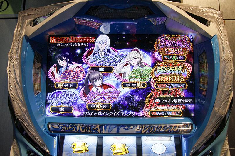 ATは純増枚数約1.4枚/Gで1セット30ゲーム。AT開始時とAT継続時に突入する1ゲーム完結の演出「ヒロインジャッジメント」の小役の引きで性能が変化するというATだ。左ファーストベルならチェリー、中ファーストベルならチャンス目、右ファーストベルならスイカ、リプレイならヒロイン図柄の「狙え!」演出出現率アップというように、それぞれで「ヒロインジャッジメント」ストックの対応役が異なる。基本的には対応役を引き、ストックをしてループさせるというゲーム性だ。