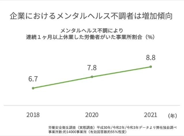 メンタルヘルスケアは世界的に関心が高まっている領域で、世界保健機関(WHO)は、2030年に「大うつ病性障害」が、虚血性心疾患や交通事故、脳血管疾患を上回り「健康な生活を障害する疾患」の第1位になると予測している。新型コロナウィルス感染症パンデミックの影響によって、精神的健康障害の有病率が高まっているという背景もある。