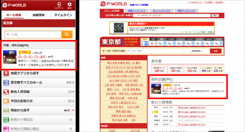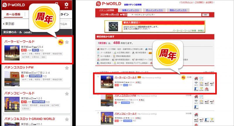 2024年04月08日No.10004276 周年を告知する新サービス開始|P-WORLD ピーワールドは4月8日、P-WORLDの新サービス「周年告知」をリリースした。 これはP-WORLD上で、パチンコホールの周年記念日や経営法人の創業月間に関する情報をアピールできるツール。任意のコメントや周年の日付けを表示できる。 ユーザーがエリアや特徴からホールを検索すると、検索結果のリストページでは対象ホールに周年アイコンが付与される。ほかの店舗にない表示は、選ばれるきっかけになりそうだ。 文=アミューズメントジャパン編集部