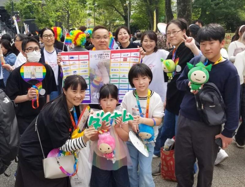 会期の最終日を飾るパレードには約1万5000人が参加した。LGBTフレンドリー企業を表明するダイナムは、イベント協賛企業であるアウト・ジャパン(東京都)が展開する「LGBT- Allyプロジェクト」の賛同企業として参画。虹色の行進に華を添えた。