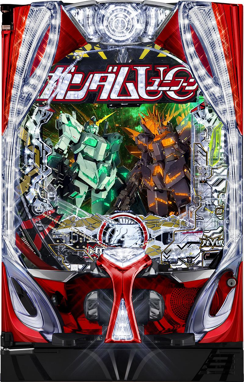 スペック・映像・役物・RUSHが進化した本機は、大当たり確率1/319.7のミドルスペック。今作はユニコーンガンダムだけでなく黒き獅子・バンシィもメインキャラクターに加わり、映像を完全一新。さらに「ガンダム」シリーズ史上最大級の役物も搭載した。