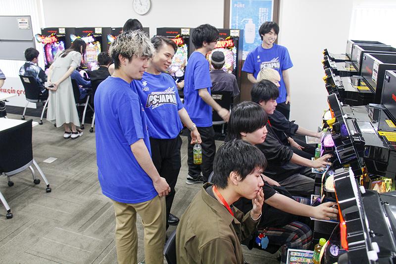 機種説明終了後は試打に移行。導入前のパチンコということもあり、学生らは興奮した様子で遊技していた。80分の試打時間で全員が大当たりとラッキートリガー(LT)を体験。RUSH終了時のリザルト画面をSNSにアップし、友達に最新機種の面白さを共有する学生もいた。