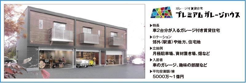 ターゲットは、車・バイク利用者で比較的高額の賃料でも構わないという高所得者。車を複数台所有する高所得者の入居が見込め、自宅のほかに「プレミアムガレージハウス」を借りる人が多いという。