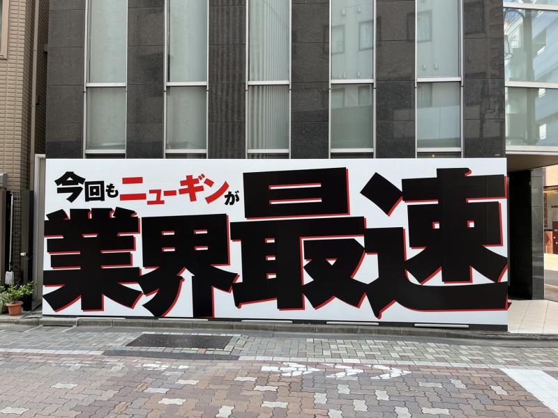 ニューギングループは、東京・上野ビルを4月末にリニューアル。これまでのショールームの概念を捨て、情報発信基地やコミュニティの場として活用を目指している。今回の新ルール最速対応は、グループミッションの「お客様の想像を超えていこう」を体現するもの。19日からは、東京・上野ビルの外壁に「新Cタイム最速対応!!」「今回もニューギンが業界最速」の文字を掲示するなど、ユニークな手法で業界を盛り上げようとしている。