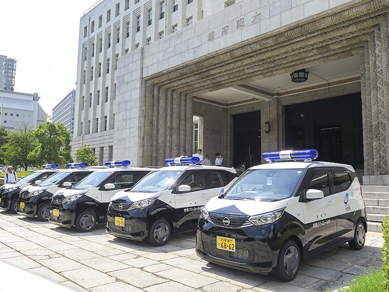 大阪府遊協は2016年度から、防犯パトロールカーの寄贈事業を開始。今年で9年目を迎え、総台数は累計60台を数えた。今年度に寄贈した5台は大阪府治安対策課を通じて、貝塚市、富田林市、藤井寺市、東大阪市、堺市美原区に贈られる。
