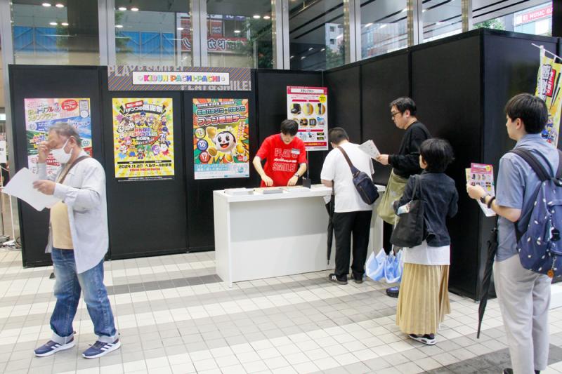 パチスロサミット2024には日遊協加盟企業からホールスタッフ90人が参加して来場者をもてなした。1階の「タッチ&トライ」コーナーでは、来場したパチスロ未経験者に親切に遊技方法を説明。行列が途切れなかったクレーンゲームコーナーでも来場者を親切にアテンドする姿が見られた。終日賑わった地下1階のウルトラ試打会でも遊技者をサポート。イベントのスムーズな運営に貢献していた。