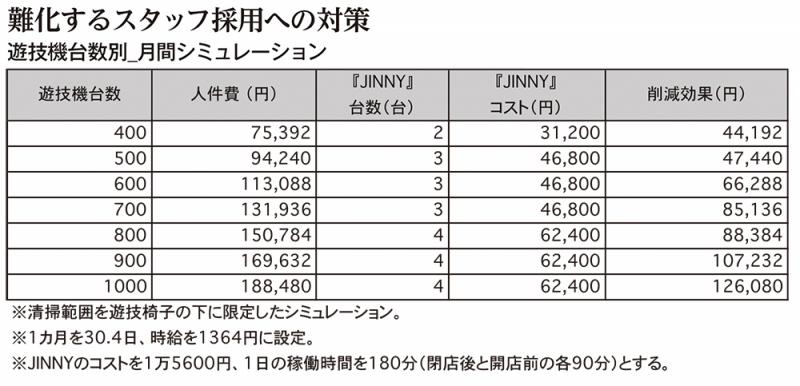 一例を挙げよう。時給1050円の清掃スタッフが30分間従事する場合、ひと月の人件費は2万738円になる。対する『JINNY20』の月額コストは1万4083円。1カ月当たり6655円の人件費をカットできる。