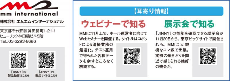 ホールの床清掃業務を清掃ロボットで完全自動化|エムエムインターナショナル『JINNY』