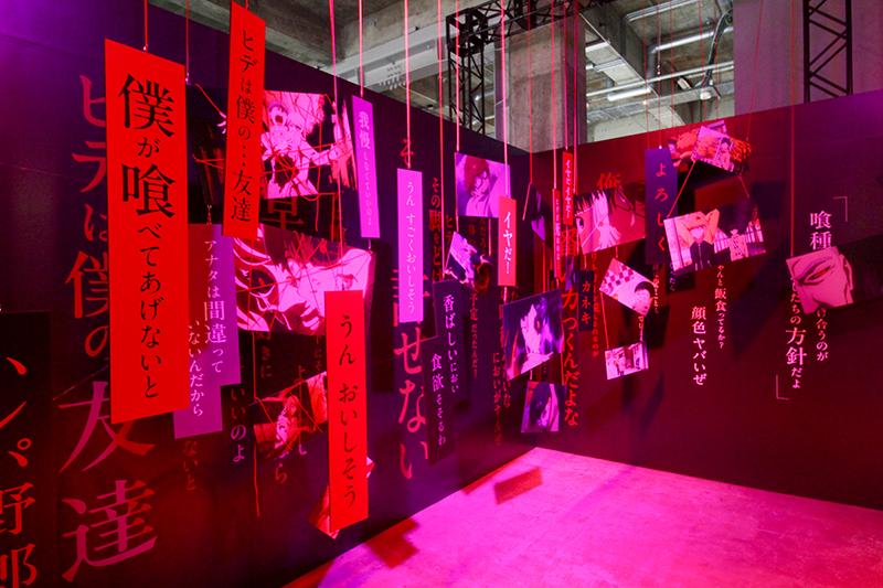 同イベントは2014年から放送が開始されたアニメ「東京喰種トーキョーグール」の“体験没入型”展示会。アニメ作品の美しく悲しい世界を立体物展示やインタラクティブ体験、臨場感のある映像などを通じて、ダークでスリリングな世界観を体感できるイベントだ。