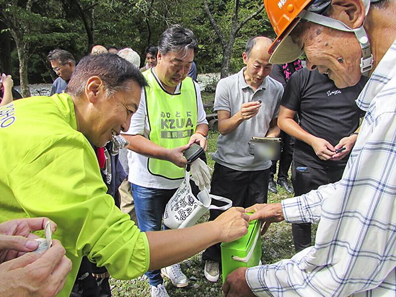作業後には懇親の場が設けられ、バーベキューやビンゴ大会で疲れた身体を労った。合間に行われた「緑の募金」では1万6343円を寄付。森林整備の推進に役立てられる。