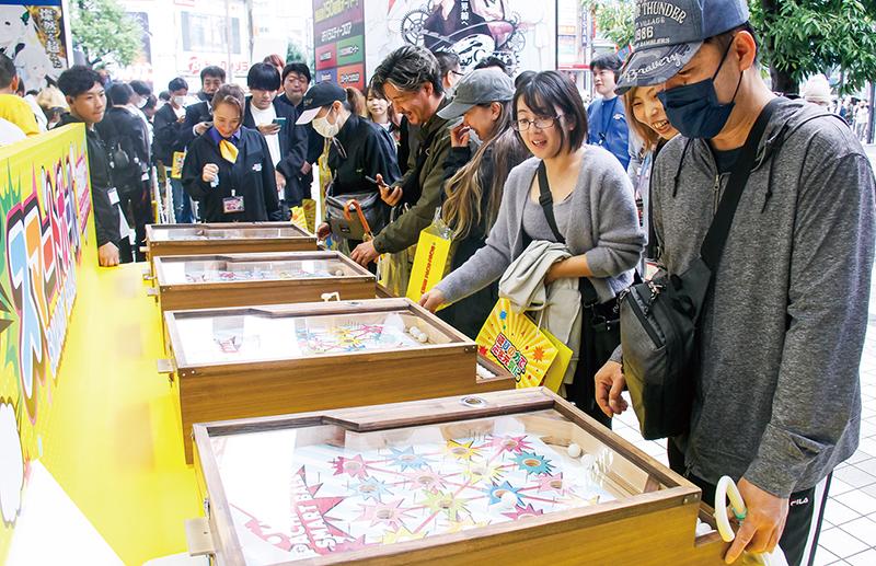 今年の「みんパチ」はベルサール秋葉原の1階フロアを試打コーナーとして、ホール未導入機種を含む最新機種約100台を設置。終日入場制限を行うほどにフル稼働した。今年も日遊協加盟のホール企業から約100人のホールスタッフが参加。最新機種を楽しみに来場した多くのファンや、場外に設置したスマートボールコーナーを盛り上げた。さらに「みんパチ」では初めてインバウンドエリアも設置。177人の訪日外国人がパチンコに触れた。