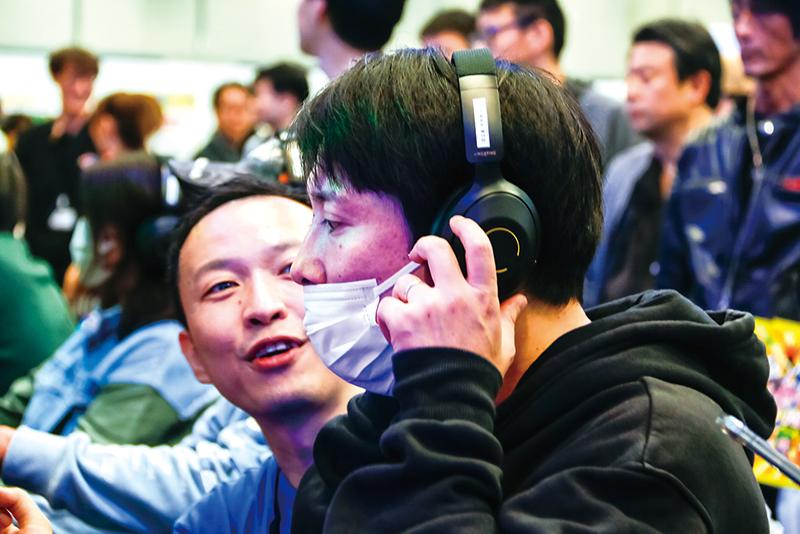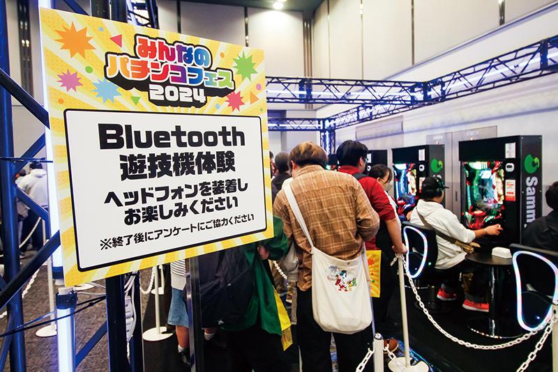 注目を集めたのが、Bluetooth機能を搭載したパチンココンセプト機の試打コーナー。ヘッドフォンを装着して没入感を味わえる遊技を多くの来場者が体験していた。近未来のパチンコの姿をファンにお披露目した。