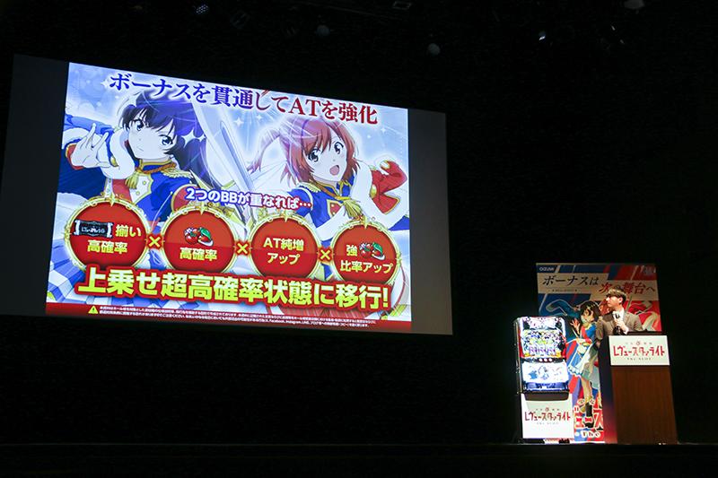 オーイズミは12月17日、東京・池袋の劇場「Theater Mixa」(シアターミクサ)で、新機種『L少女☆歌劇 レヴュースタァライト -The SLOT-』のプレス発表会を開催した。