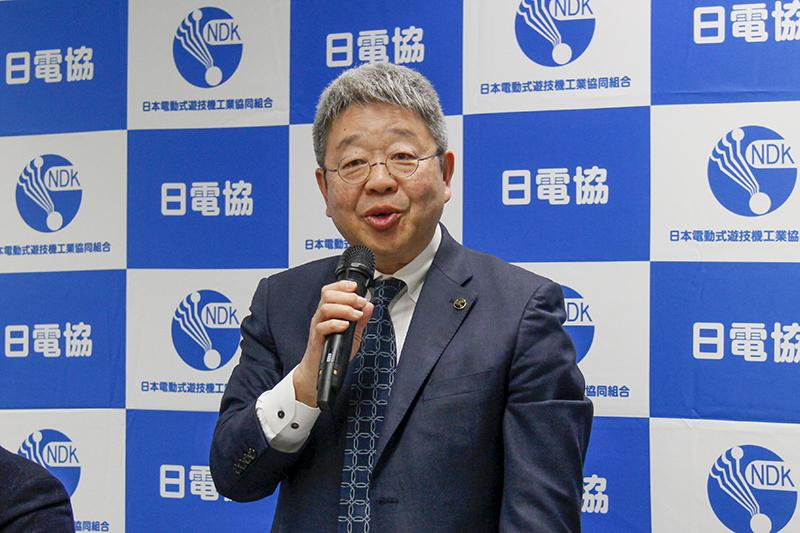 冒頭であいさつした小林理事長は「多種多様なパチスロ機が提供できるよう、数年前から行政に相談していた。その結果、昨年8月に解釈基準が改正され、BT機が実現可能になった。昨年11月には型式試験申請を開始し、適合を受けた機種もある。開店日は早くて6月頃、数機種同時開店を目指している」と具体的な導入予定日も含めた話があった。