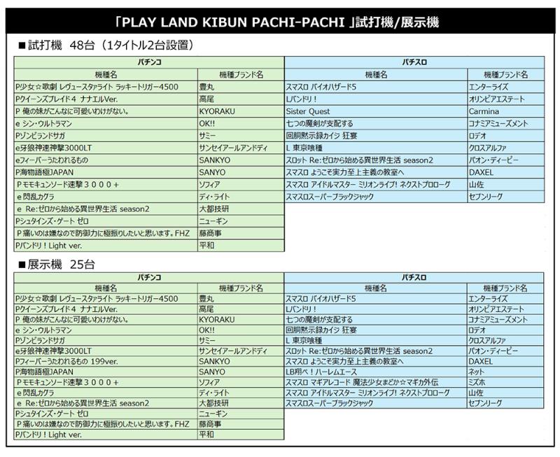 ブース名は「PLAY LAND KIBUN PACHI-PACHI」。「アニメをフックにパチンコ・パチスロの疑似パチンコホール体験」をコンセプトに試打機や展示機などを設置し、アニメファンや新規ユーザーにアプローチすることを目的としている。