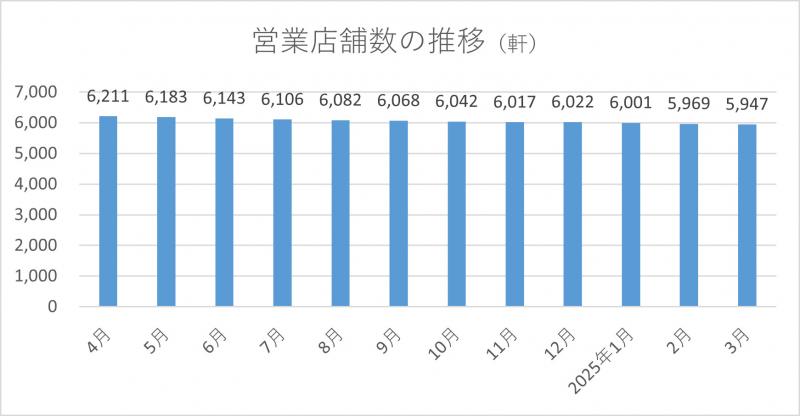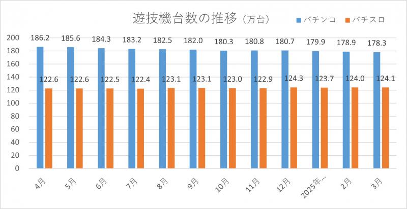 2025年04月17日No.10004815 全日加盟店舗数は前月から22軒減の5947軒 全日本遊技事業協同組合連合会が集計した組合加盟店舗の実態調査によると、2025年3月末時点の営業店舗数は5947軒で、前月より22軒(0.4%)減少した。新規店舗数は1軒、廃業店舗数は24軒、当月中の休業店舗数は7軒。 パチンコ遊技機台数は178万2650台で、同6758台(0.4%)減少した。パチスロ遊技機台数は124万532台で、同361台(0.0%)増加。遊技機総台数は302万3182台だった。 文=アミューズメントジャパン編集部