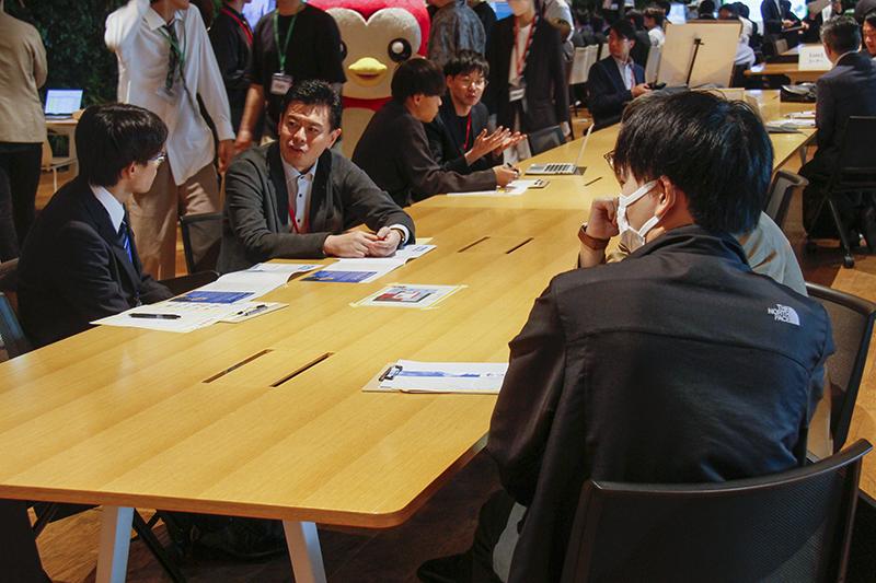 13時のイベントスタートから多くの学生が会場に駆け付け、それぞれの企業ブースで採用担当者の会社説明を熱心に聞く学生の姿がみられた。採用担当者と一対一で話ができる「1on1コーナー」では、ブースで話しきれなかった会社説明や学生からの質問に答えていた。