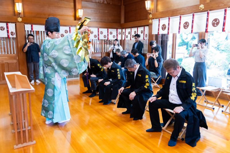 当日は、人気キャラクター・佐野万次郎(マイキー)役を務める声優の林勇さんをはじめ、サミーの星野歩代表取締役社長執行役員COO、田中宏孝取締役常務執行役員、坂本幸敏執行役員らが参列。神社神主によるご祈祷が厳かに執り行われ、ホールでの高稼働や新規ファン獲得、そして業界のさらなる発展を祈願した。神社内では授与所で特製ステッカーのプレゼントを準備。神楽殿前には「東京リベンジャーズ」デザインのぼりが設置された。
