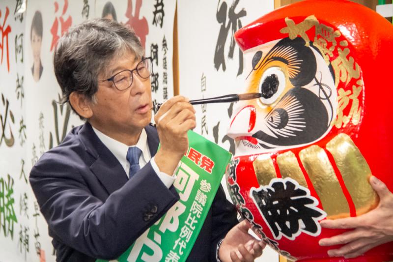 全日本遊技事業協同組合連合会の阿部やすひさ理事長が、7月3日に公示された第27回参議院議員選挙に自民党公認の比例代表候補として立候補した。同日朝に東京都新宿区の遊技会館で出陣式が開催された。