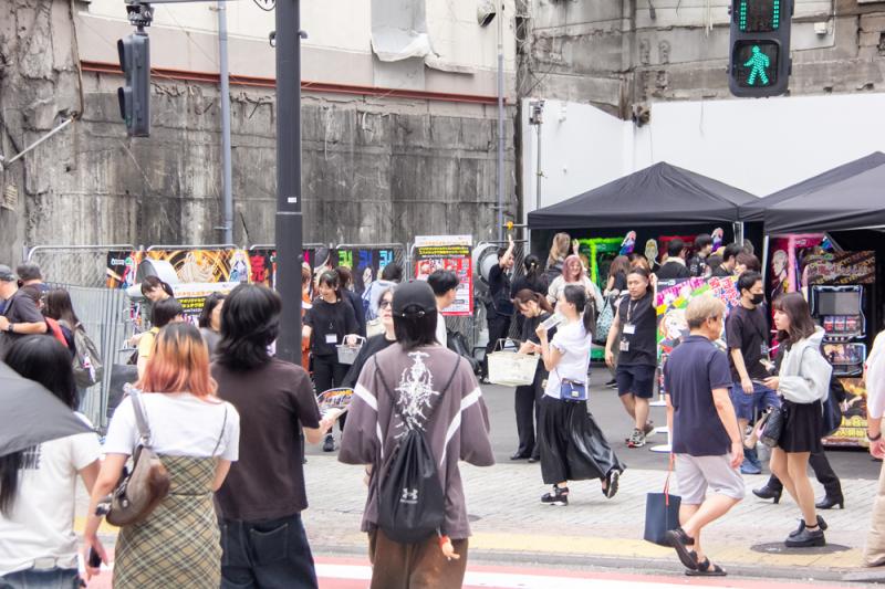 会場となった「渋谷道玄坂広場」は、渋谷駅ハチ公口から道玄坂を進んで徒歩2分。109前の交差点に面する絶好の場所。会場入口にはリベパチ3台、リベスロ1台を展示。道玄坂を通る多くの人たちがスマホで写真を撮る姿が見られた。