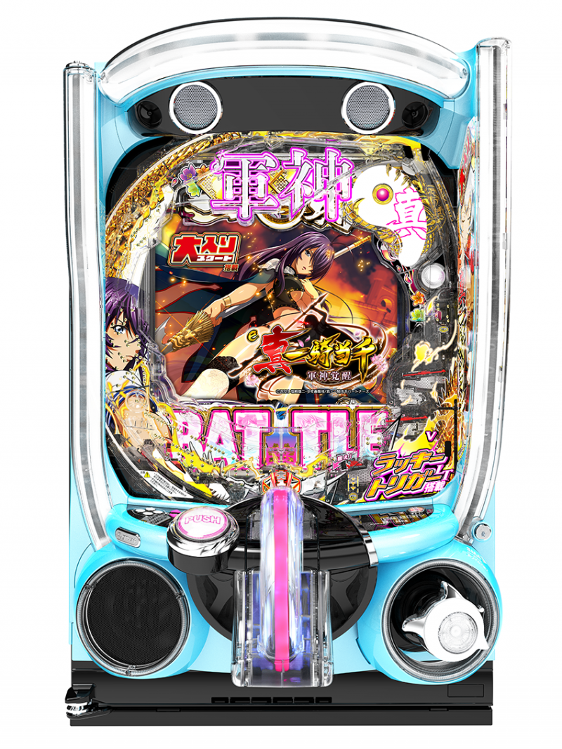 最新作『e 真・一騎当千~軍神覚醒~』は、「LT3.0プラス」対応機でスタートチャッカーが通常の1.5倍に広がった「大入りスタート」いわゆるデカヘソを搭載した「319大入りver.」と、ラッキートリガーの突入率が高い「396ver.」を同時リリースする。甲乙つけがたいスペックだが、よりユーザーの関心を集めたのが「319大入りver.」だ。デカヘソ機種は、さまざまなメーカーからリリースされているが、「一騎当千」シリーズが持つ“演出を楽しみたい”とされるファン層にマッチする。