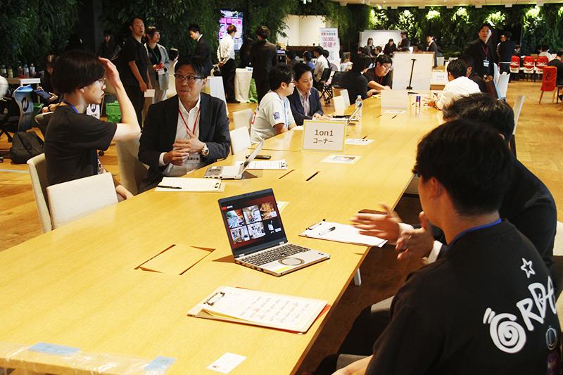 12時30分からの受付開始から、多くの学生が会場に駆け付けた。それぞれの企業ブースでは採用担当者が自社をアピール。ブースで話しきれなかった会社説明や学生からの質問などには、採用担当者と一対一で話ができる「1on1コーナー」でコミュニケーションを図っていた。
