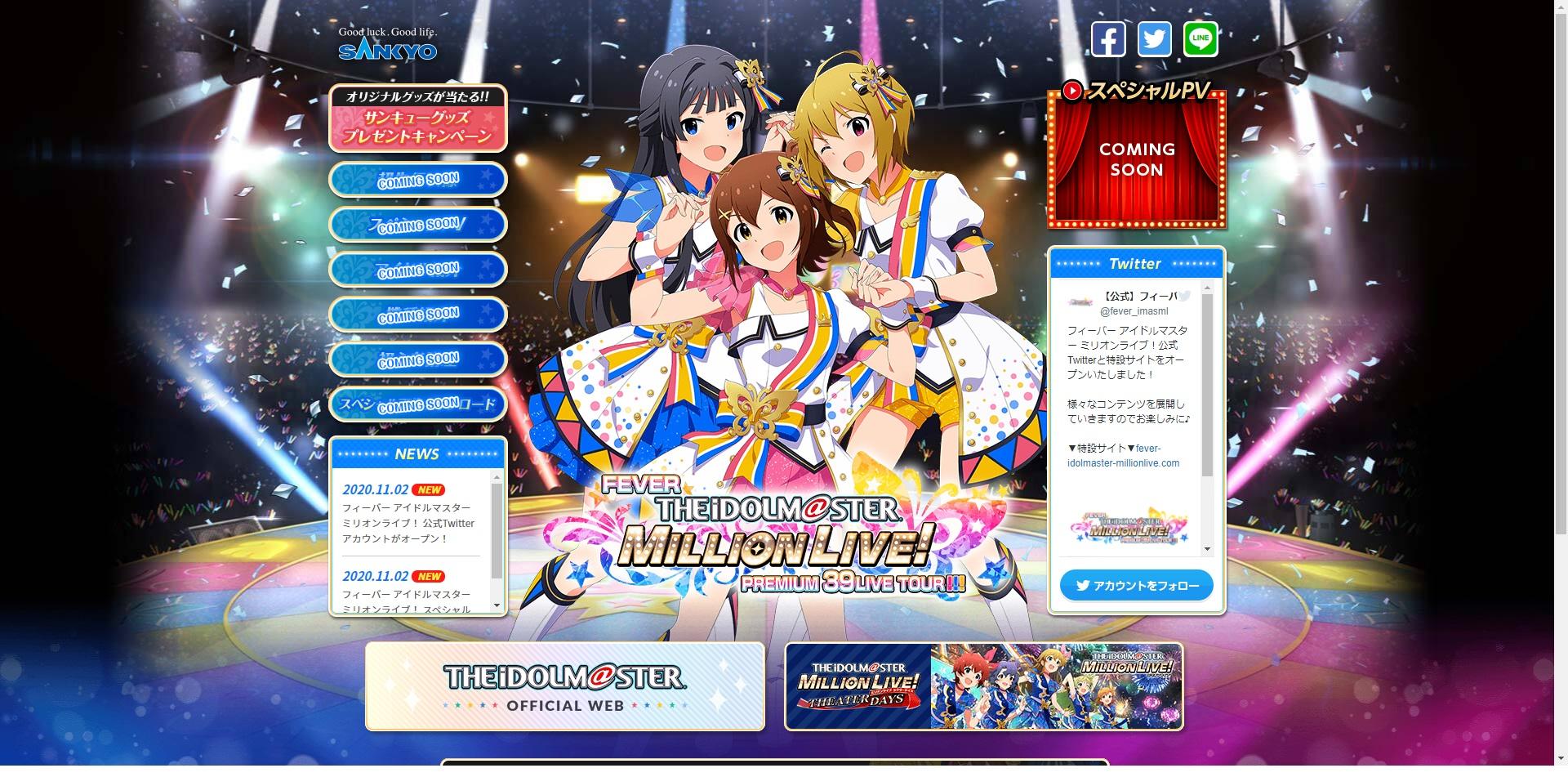 2020年11月02日 ニュース SANKYOが“Pミリマス”の特設サイト開設『Pフィーバーアイドルマスターミリオンライブ!』 SANKYOは11月2日、新機種『Pフィーバーアイドルマスターミリオンライブ!』の販売に先立ち、特設サイトとTwitte…