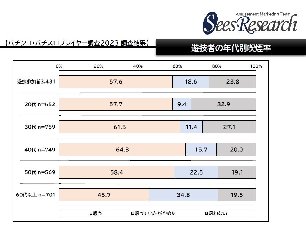 2023年05月31日 ニュース 遊技者の喫煙者率は58% シーズ、EBI、APJ共同調査シーズリサーチ 『パチンコ・パチスロ プレイヤー調査2023』 シーズリサーチは今年2月にEBIとAPJと共同で実施した調査結果から、プレイヤーの喫煙者率を公表した。 『パチンコ・パチ…
