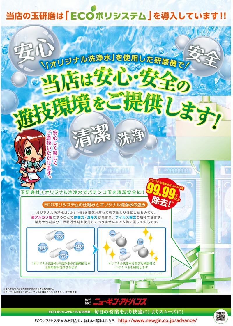 2020年10月02日 特集記事 ニューギン・アドバンス除菌対策もECOポリシステムでウイルスを99%除去 ※すべてのウイルスを除去できるものではありません。 一日も早い業況回復に向けて 安心・安全な遊技環境を提供 「Withコロナ」が常態化し、ホールでは引き続き感染防止対策が…