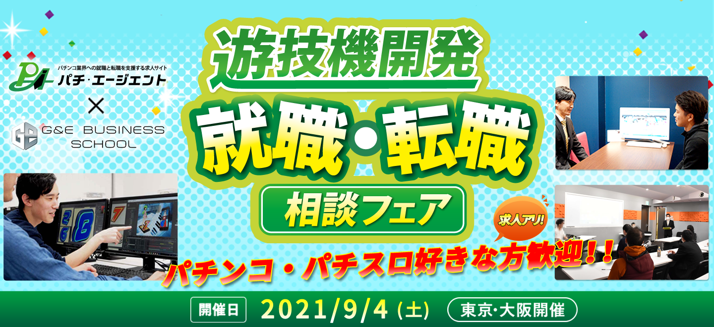 2022年07月19日 ニュース G&Eビジネススクール×パチ・エージェント「遊技機開発 就職・転職相談フェア」を開催 パチンコ業界への就職を目指す専門学校G&Eビジネススクール(渋谷区)と、パチンコ業界への転職支援サービスを行うパチ・エー…