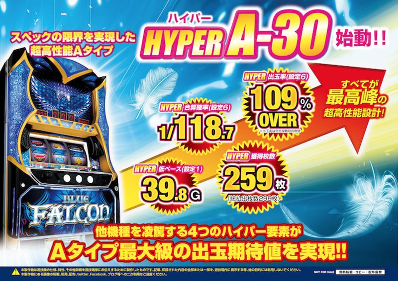 2022年01月14日 ニュース 玉越が30φのパチスロPB機を開発『HYPER A-30 BLUE FALCON』 「GOLD玉越」の屋号で愛知県にホール8店舗を展開する玉越(名古屋市)が、プライベートブランド(PB)の30φパチスロ機…