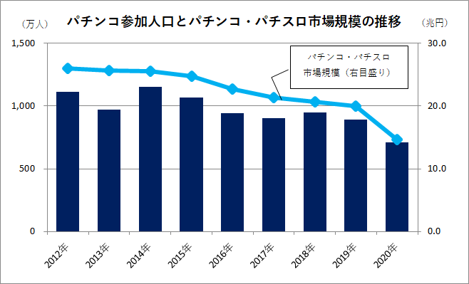 2021年09月29日 ニュース 『レジャー白書2021』発表2020年のパチンコ参加人口は710万人 前年から180万人減 日本生産性本部の余暇総研が9月28日、都内で記者会見を開催し、2020年の余暇活動調査や各種産業データを取りまとめた『レ…