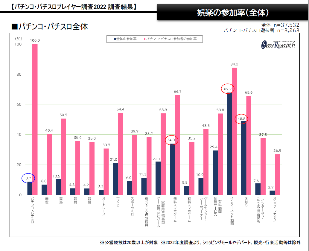 2022年04月28日 ニュース シーズリサーチ遊技者の半数が競馬も遊んでいる『パチンコ・パチスロプレイヤー調査2022』 シーズは4月27日、各種娯楽の参加者率を発表した。インターネット動画は67.7%、SNSは48.8%、無料スマホゲームは…